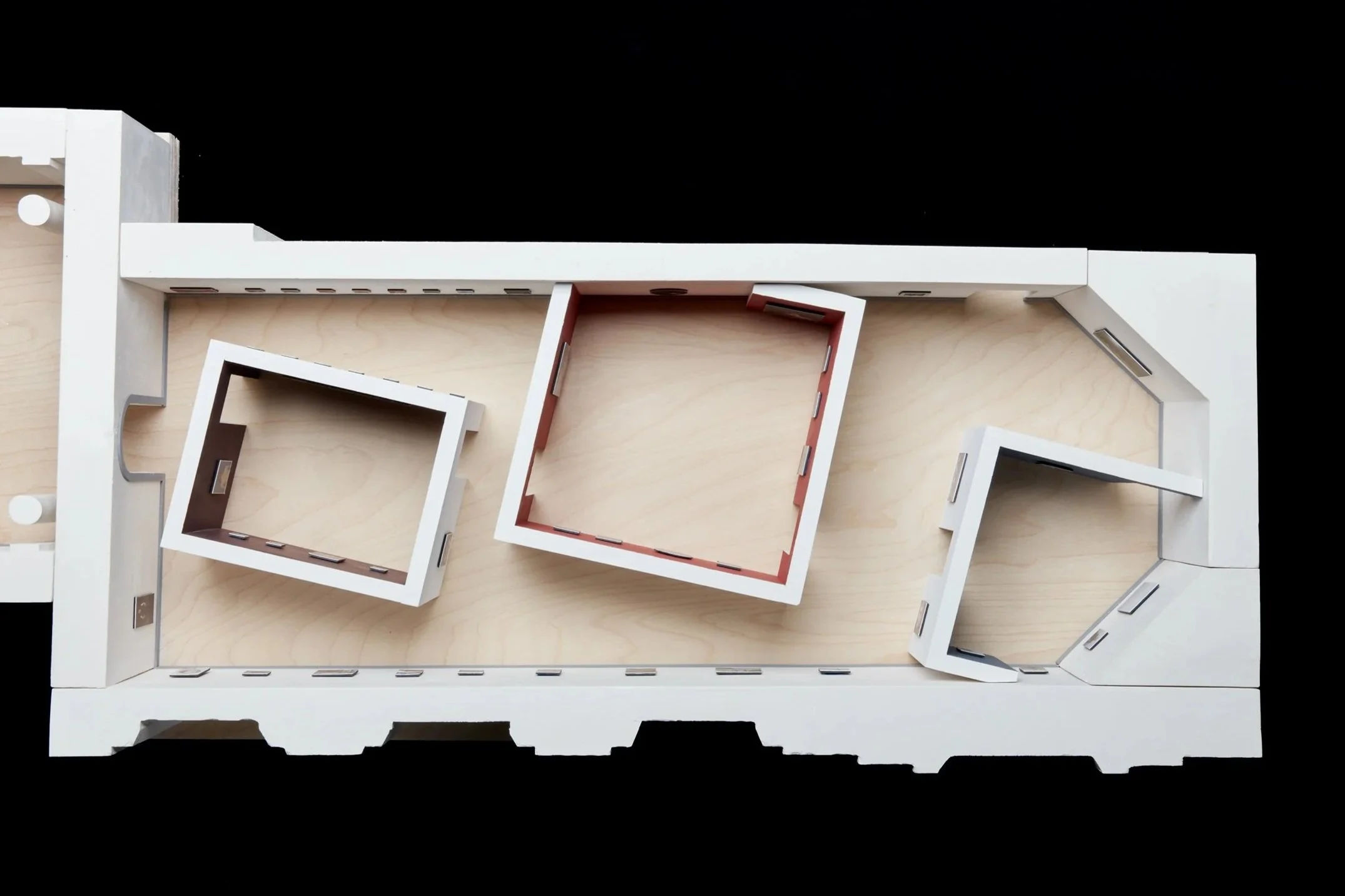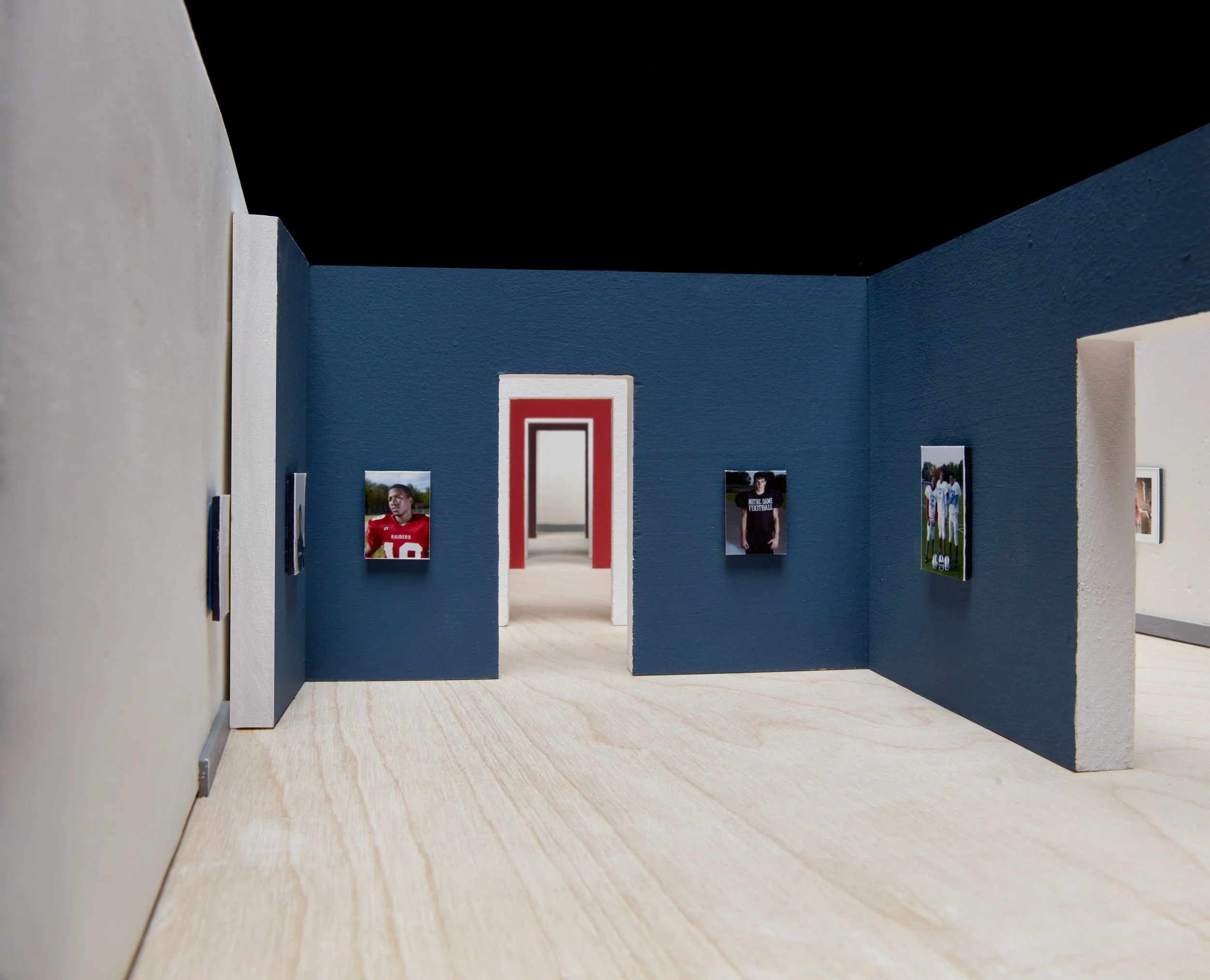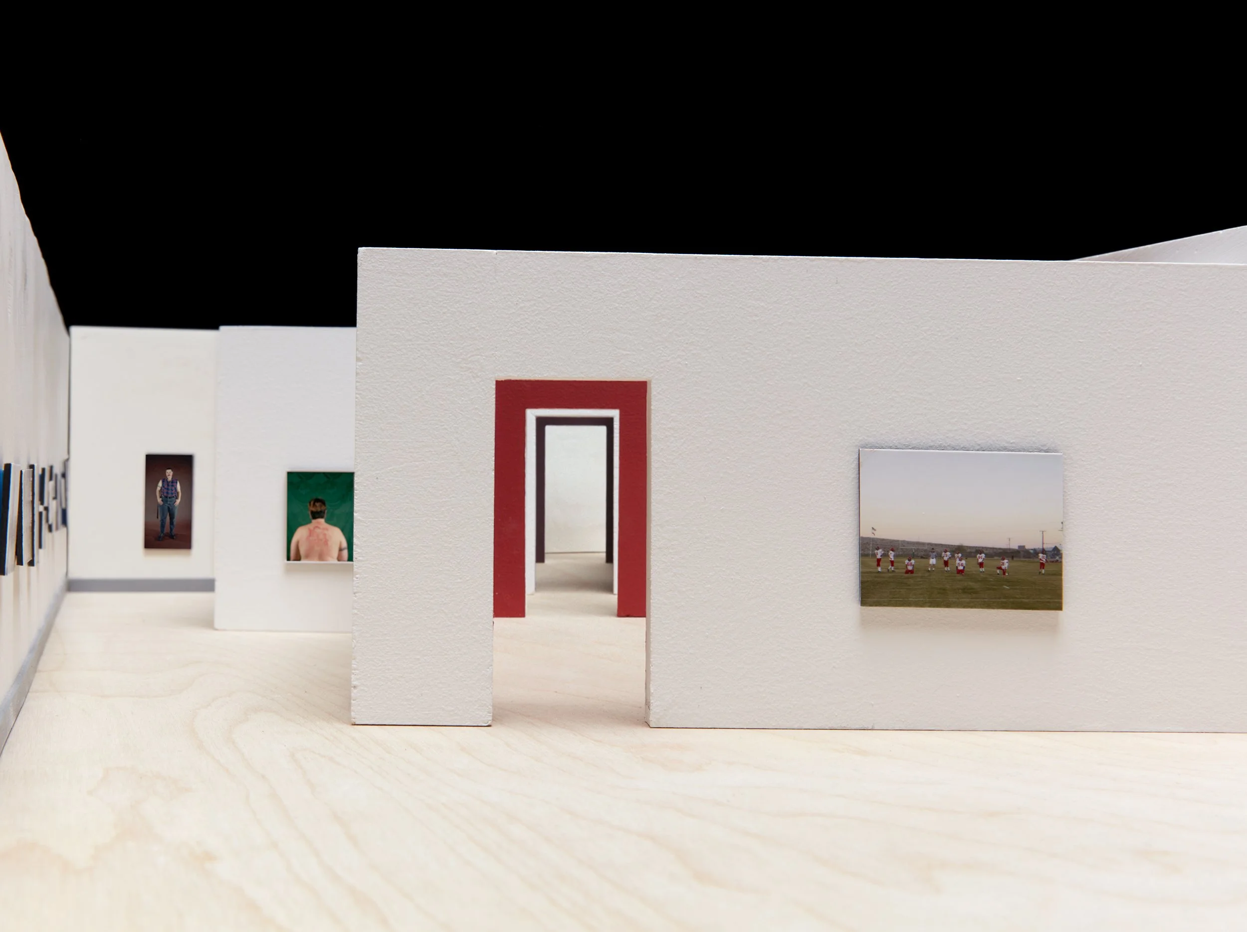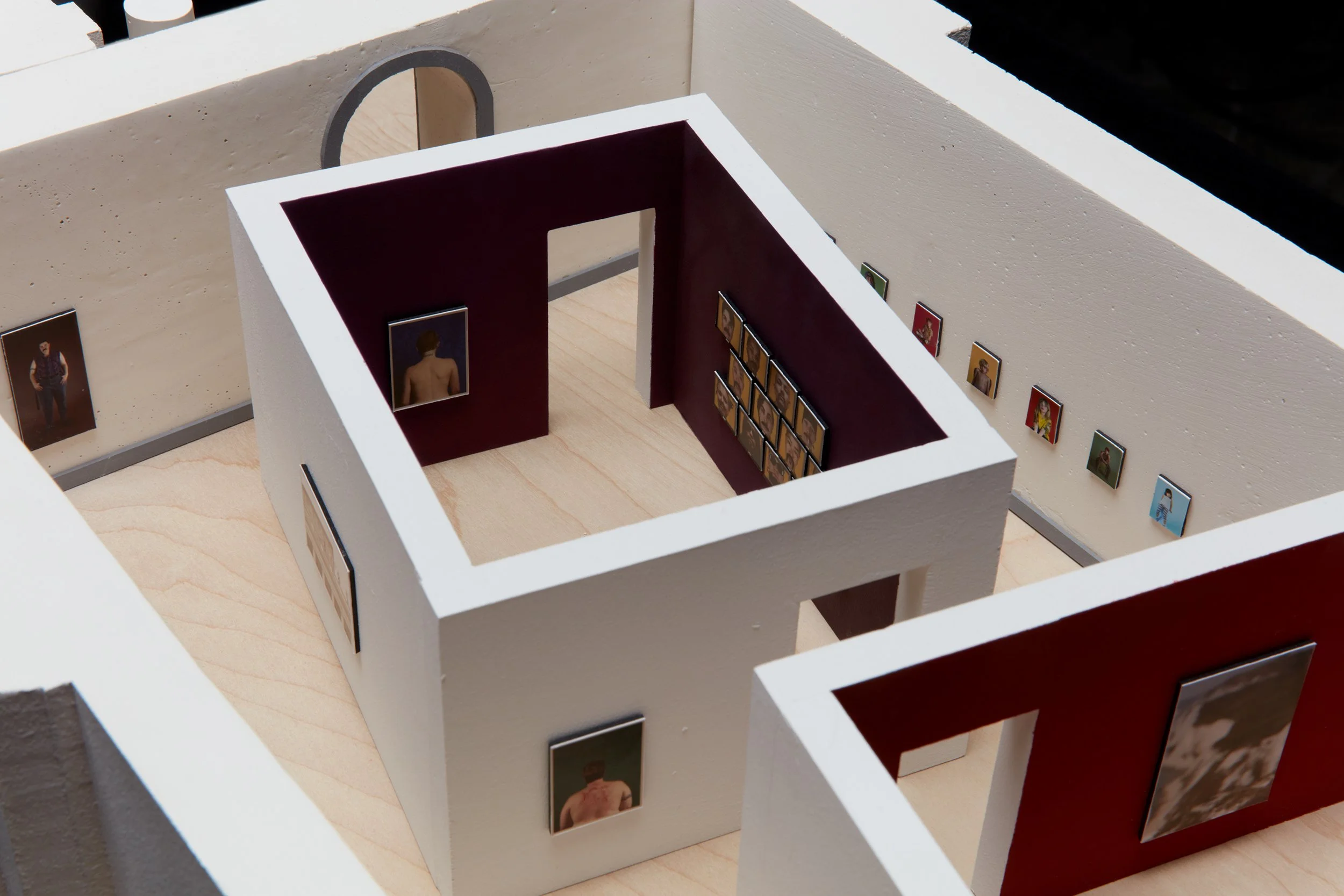 Room with Rooms is an exhibition design project for the National Portrait Gallery in London, that stages a dialogue between Catherine Opie’s expansive portrait practice and the long history of portraiture housed within the institution. Rather than dispersing Opie’s works throughout the galleries, the design reconstitutes the Gallery itself within the exhibition, creating “rooms within rooms” that allow for a direct encounter with both the formalities of portraiture and the politics of identity.