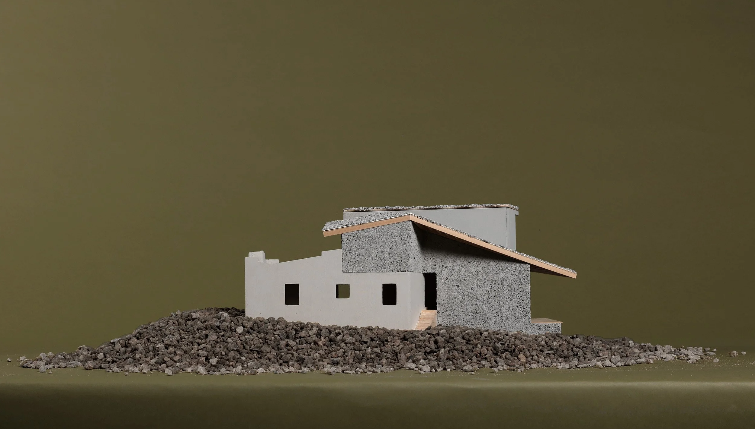 Rough House is a large addition to a two-bedroom bungalow on a steep and narrow hillside lot in Echo Park. The three-story addition comprises an ADU, an extended kitchen and patio, a family room, and primary suite. Maintaining the terracing logic of the site, the new mass stacks and twists to allow continued connection with the site and views. Crouching beneath a deep overhang, the project mobilizes the ubiquitous language of the Craftsman roof and dormer to minimize the appearance on the site. Working within the Los Angeles residential material palate, the design deploys both rough and smooth material articulation to unravel and explore the seams between the high and the low, the found and the new, the everyday and the rarified, to find a new attitude of these forms and materials.